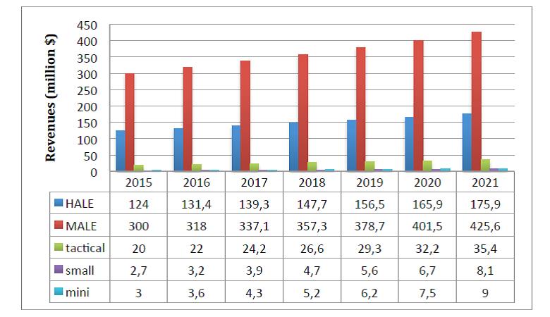 Figure 2 | Estimated revenues by (military) class of UAV: 2015-2021