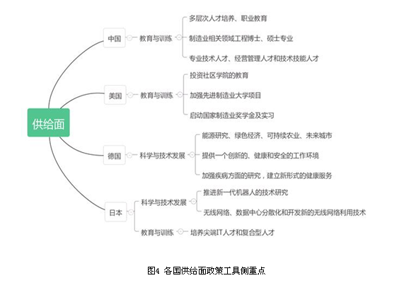 我国政府在供给面将注意力集中在了对教育与训练的供给上,可以看出我国认为人才是创新的重中之重,积极培养创新型人才,推动本国制造业的创新发展。