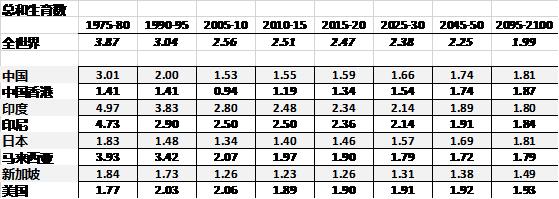 直到前几年,报刊还常夸赞限制生育的国策成就非凡,称开放以来限制少生了三亿,甚至四亿个孩子,从而减轻了人口负担,对经济的高速增长是一个大贡献。现在很少再提起这类“成绩”,因为被砸的是自己的脚,开始作痛起来。从上面的数据不难明白,即便没有严格限制的政策,同一时期内许多国家和社区的出生率,也在迅速下降中。为此我们还特意列出了新加坡、香港、马来西亚和印尼的数字作为参照,两个城邦、两个人口大国,都拥有众多的华裔居民。